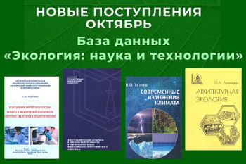 Приглашаем ознакомиться с новыми поступлениями в базу данных «Экология: наука и технологии» за октябрь 2025 г. В октябре БД пополнилась более чем на 300 записей. Среди них монографии, учебные и учебно-методические пособия, сборники научных трудов и статьи по актуальным достижениям в области решения экологических проблем.