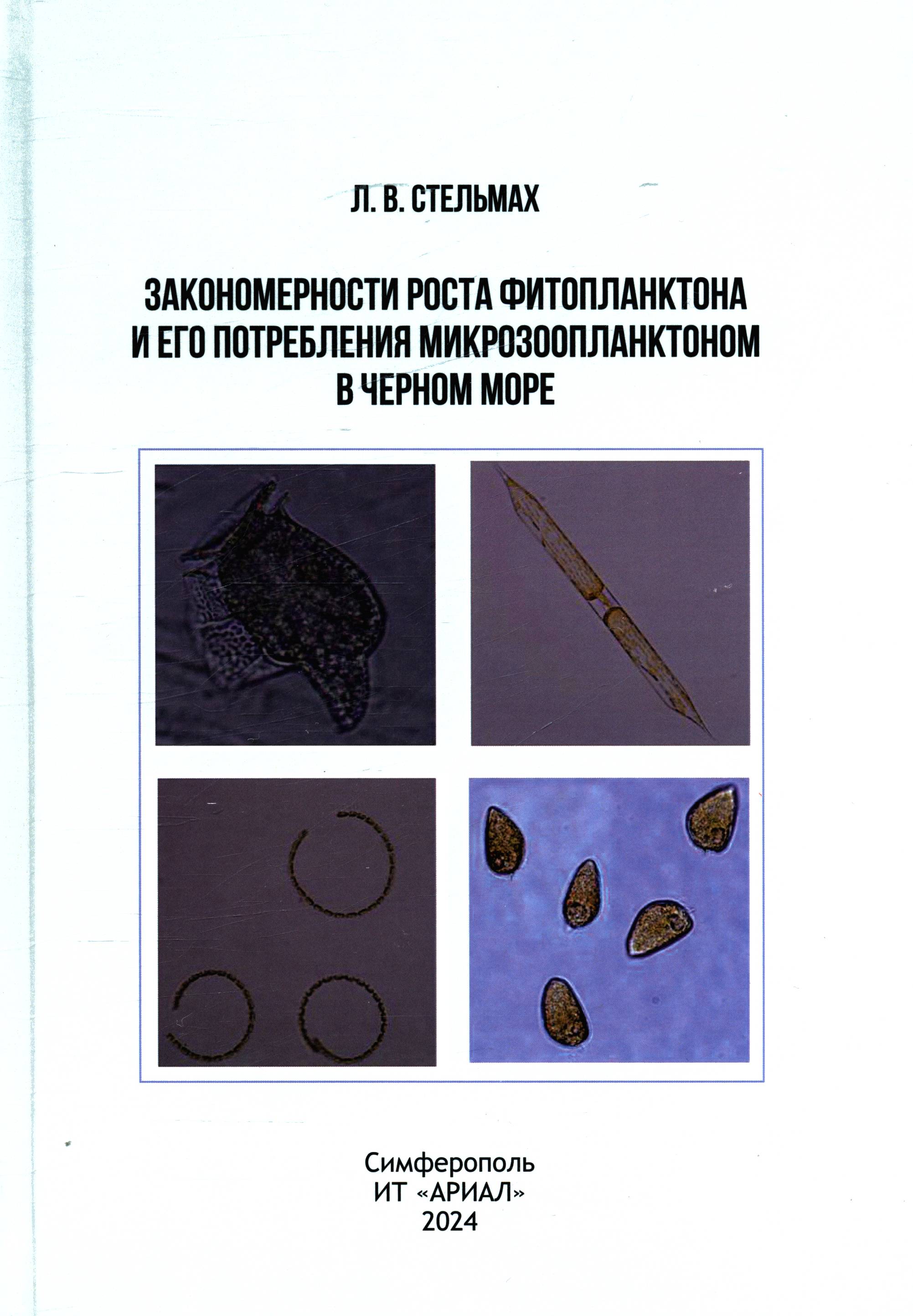 Закономерности роста фитопланктона и его потребления микрозоопланктоном в Чёрном море = Patterns of phytoplankton growth rate and its consumption by microzooplankton in the Black Sea/ Л. В. Стельмах; Институт биологии южных морей имени А. О. Ковалевского. – Симферополь: АРИАЛ, 2024. – 193 с.: ил. – Загл. на корешке и обл.: Закономерности роста фитопланктона и его потребления микрозоопланктоном в Черном море. – Парал. тит. л. англ.. – Библиогр.: с. 166-193 (336 назв.). – ISBN 978-5-907819-30-6.