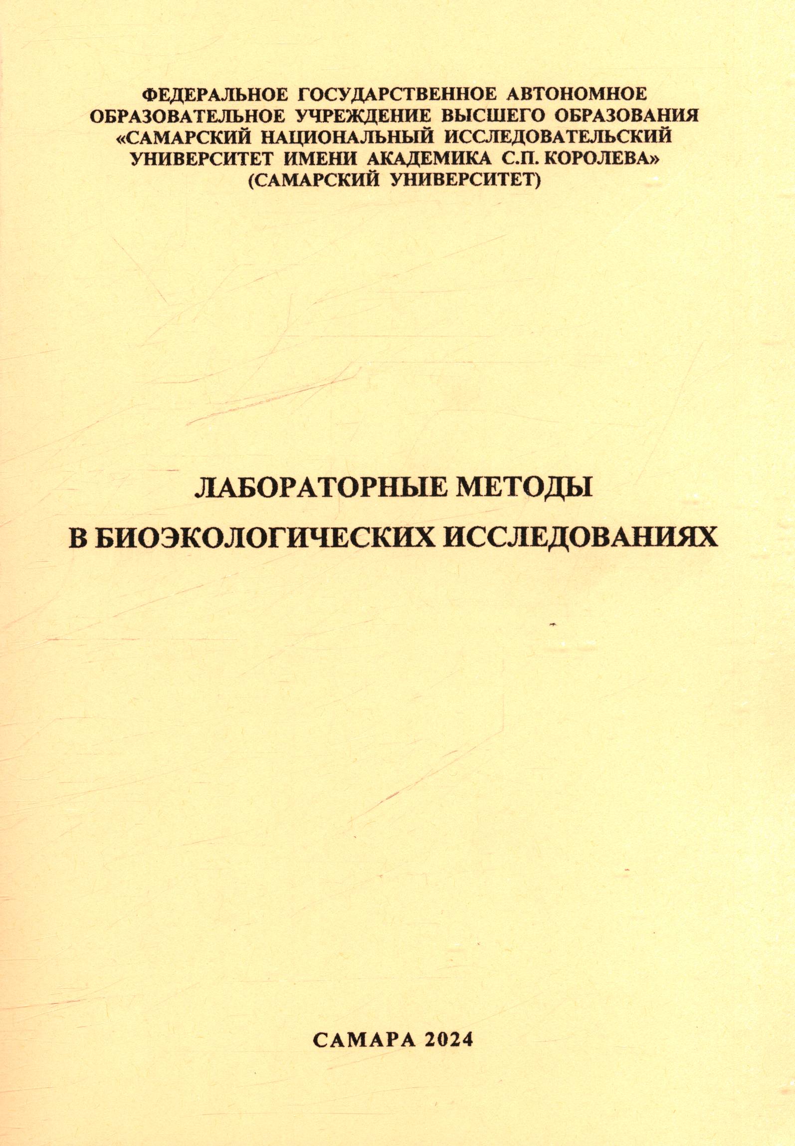 Лабораторные методы в биоэкологических исследованиях : практикум / Л. М. Кавеленова, Н. В. Власова, Ю. В. Макарова, Е. В. Ревинская; Министерство науки и высшего образования Российской Федерации, Самарский национальный исследовательский университет имени С. П. Королева (Самарский университет). – Самара: Изд-во Самарского ун-та, 2024. – 174 с.: ил. – Библиогр.: с. 168-174 (74 назв.). – Авт. указаны на обороте тит. л. – ISBN 978-5-7883-2092-2.